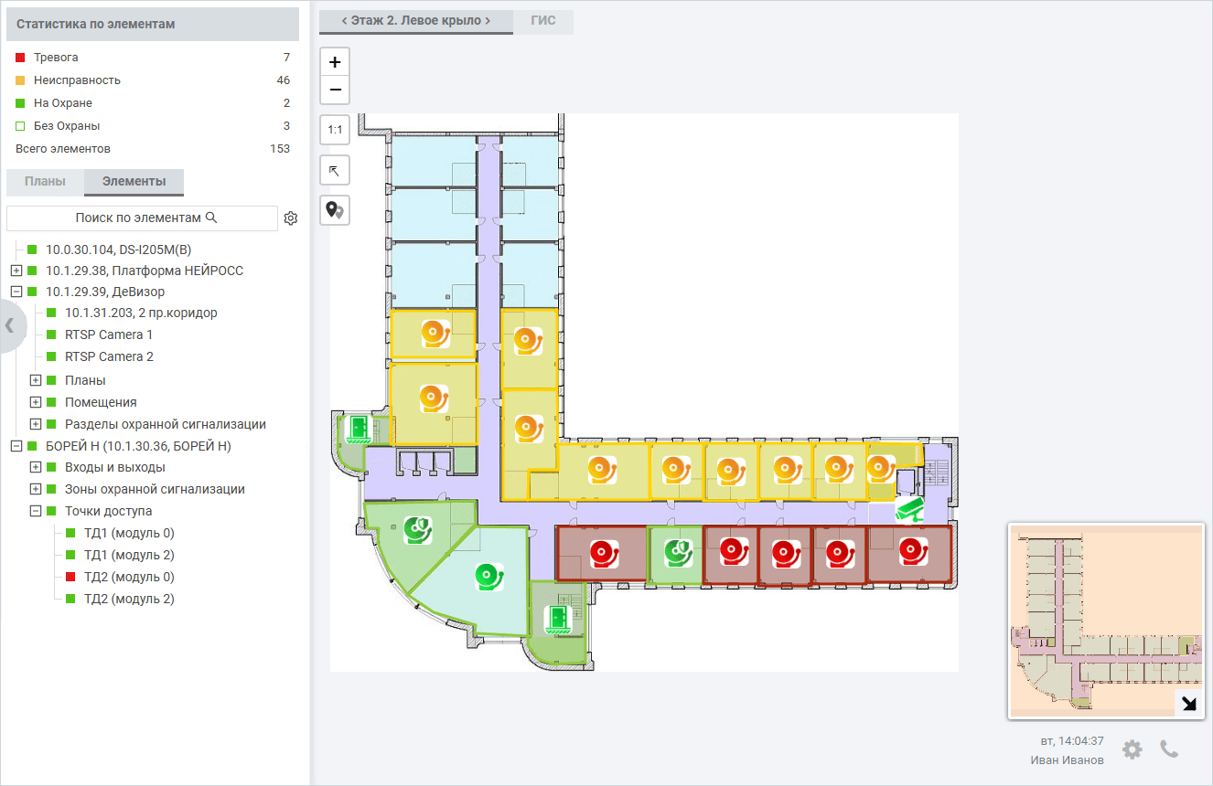Мы учитываем пожелания пользователей и постоянно совершенствуем наши продукты. Поэтому с версии 20.12 Платформы НЕЙРОСС добавлена возможность скрытия ленты событий и дерева планов/элементов, а также поиск элементов системы безопасности по набору меток.