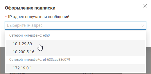 В отобразившемся окне выберите из раскрывающегося списка требуемый IP-адрес.
