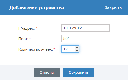 Блок Устройства предназначен для добавления модулей хранения и ввода их параметров.