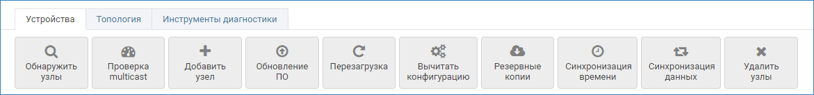 C версии 20.40 Платформы НЕЙРОСС и 20.3.13111 БОРЕЙ часть кнопок панели управления вынесены в подменю Другие действия. Кнопка Проверка multicast перенесена на вкладку Инструменты диагностики.