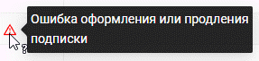 При наличии ошибки отображается иконка. При наведении отображается подсказка: | |