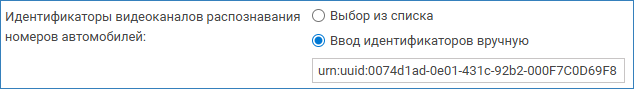 | Идентификаторы видеоканалов распознавания номеров автомобилей | Выбор из списка медиаисточников или идентификатор вида urn:uuid:00030050-0000-1000-8000-544249ab1f67 | Выберите из раскрывающегося списка медиаисточник, для которого настроена связь с каналом распознавания. Все НЕЙРОСС-извещения о событиях ФВФ от данного медиаисточника будут обрабатываться, извещения от других медиаисточников будут игнорироваться. ВАЖНО Для получения списка медиаисточников с Платформы НЕЙРОСС необходимо авторизоваться под «облачной» учётной записью. Это действительно для Платформы НЕЙРОСС до версии 20.42. В более «свежих» версиях обновлена система авторизации сетевых запросов между узлами НЕЙРОСС. Плагины, разработанные ранее, не могут получить доступ к списку медиасточников, запрос возвращает ошибку 401. Поэтому с версии 20.45 в интерфейс Платформы НЕЙРОСС добавлен вывод urn:uuid: видеоканала. Если список медиаисточников не загрузился: