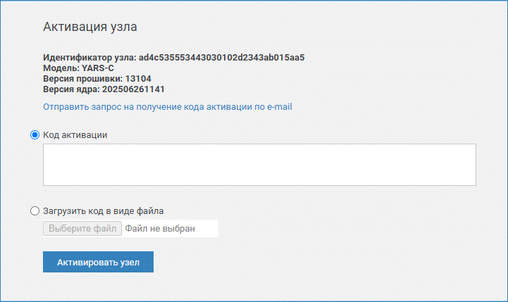 Повторная активация узла требует отправки по электронной почты предоставленной на страницы активации идентификатора узла и загрузки полученного в ответ кода активации.