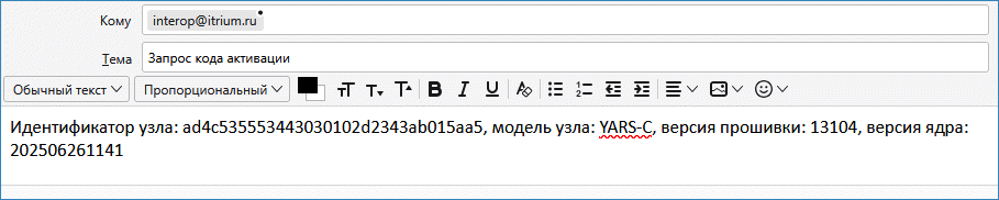 Если вы пользуетесь он-лайн версией почтового приложения, скопируйте идентификатор узла и перешлите специалистам компании ИТРИУМ на e-mail, указанный на изображении выше.