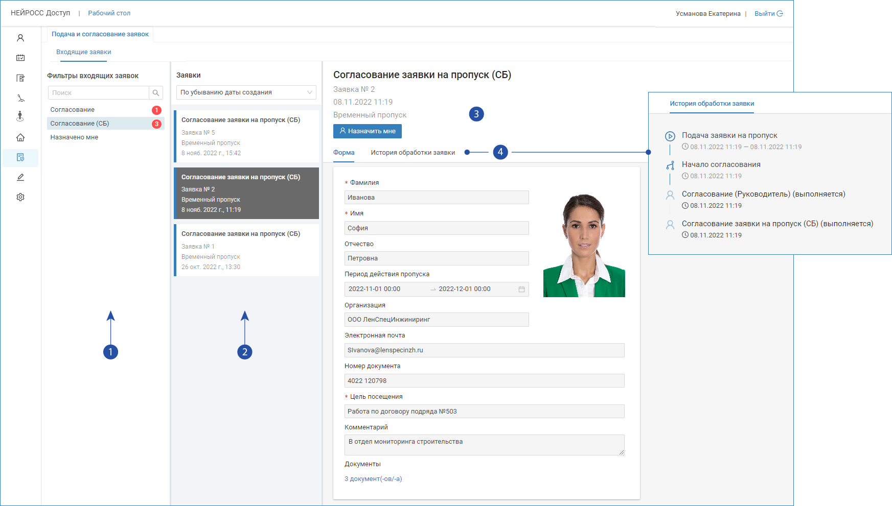 - АРМ НЕЙРОСС Доступ > Заявки на пропуска > Вкладка Подача и согласование заявок