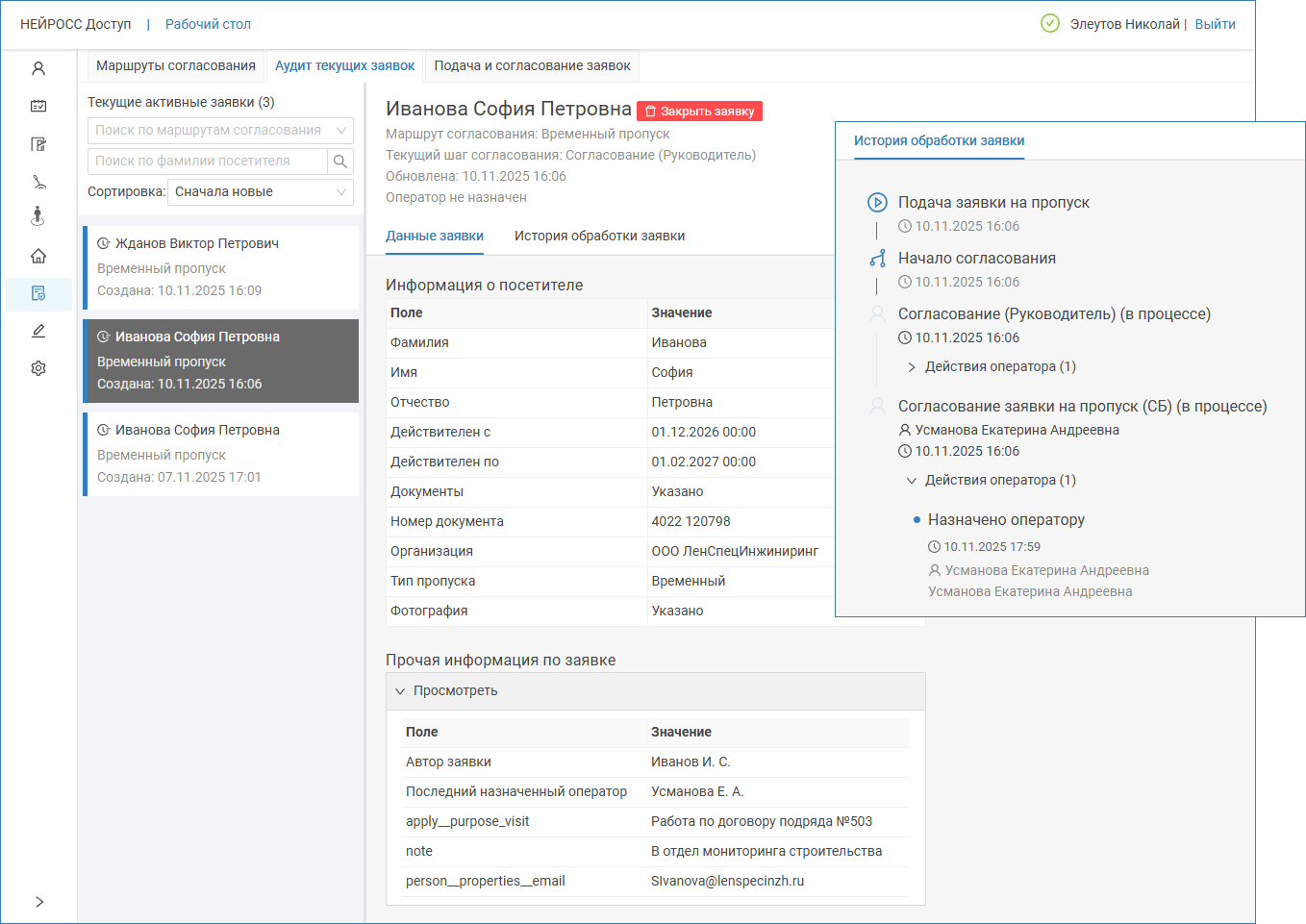 Страница: Аудит текущих заявок