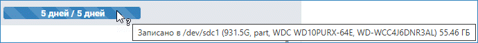 Записано Информация о выделенном месте или временном интервале, выделенном под запись, а также о проценте заполнения выделенной области накопителя. При наведении указателя мыши появляется дополнительная информация.
