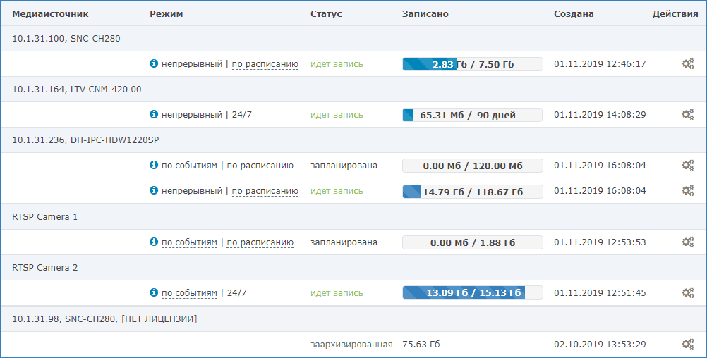 Видеозаписи для удаленных медиаисточников архивируются автоматически. Также архивируются записи по удаленным профилям (на камере ONVIF-после перевычитывания профилей). Вы можете просмотреть архив такой записи с помощью команды Просмотреть архив, доступной в этом же меню, а также — посредством просмотра содержимого накопителя (вкладка Локальный архив) [Накопители]. Дополнительная информация приведена в разделе [Камера вышла из строя. Как не потерять архив? Как её заменить?].