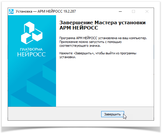 Нажмите на кнопку Завершить для завершения установки АРМ НЕЙРОСС.
